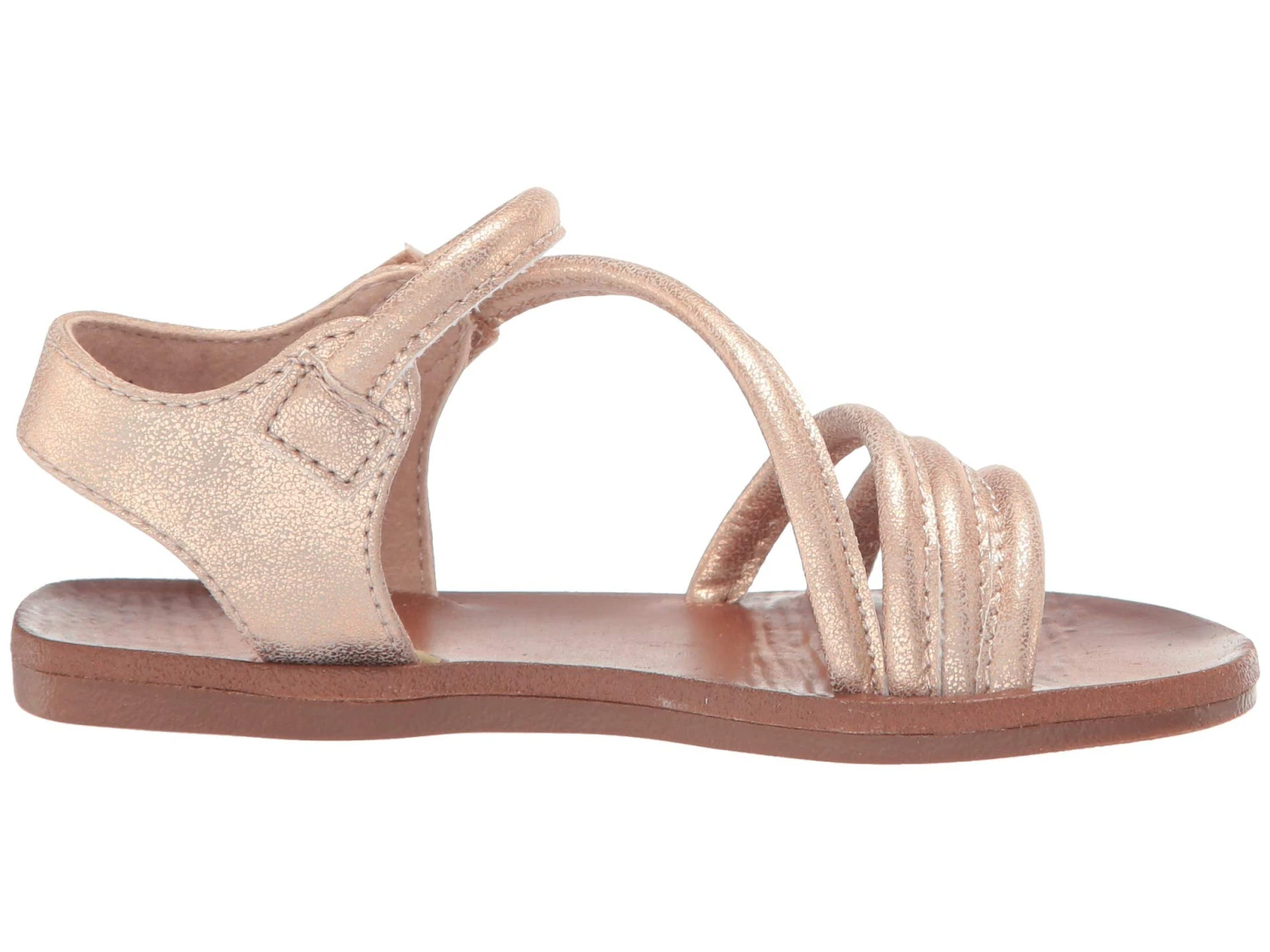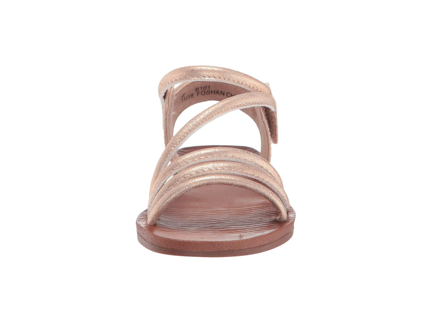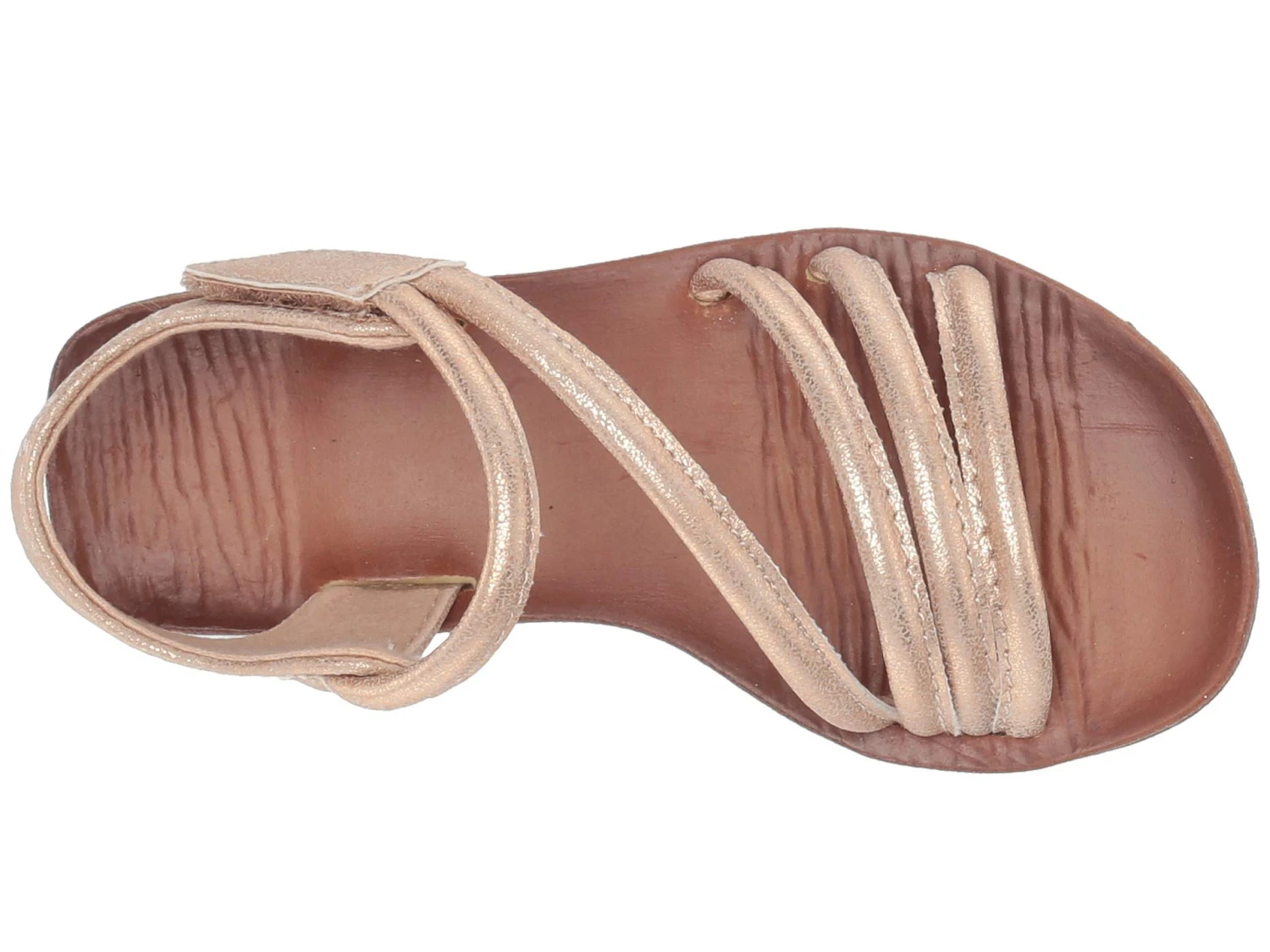 - Leather-like, metallic man-made upper with a strappy design.